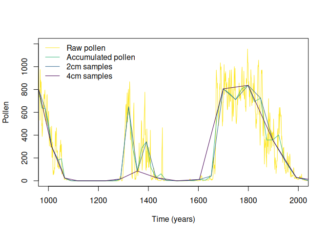 5.Apply the virtual accumulation rate to the simulated pollen, and sample the outcome at different depth intervals.