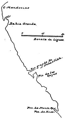 Illustrations: Modern map of California coast, 74; Viscaino’s map (1602), 75; Dudley’s map (1646), 76, 77; Jeffreys’ sketch-map (1753), 77.