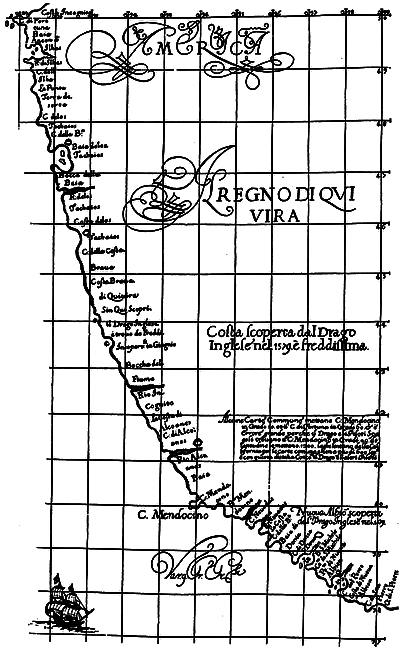 Illustrations: Hondius’s map, 79; Portus Novæ Albionis, 80; Molineaux’s map (1600), 80; Sir Francis Drake, 81, 84; Thomas Cavendish, 83.