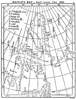 Illustration: Luke Fox’s map of Baffin’s Bay (1635), 98.