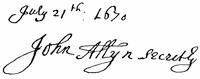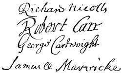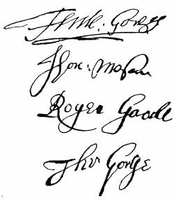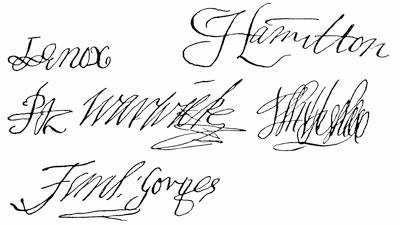 Autographs: J. Popham, 175; Ferd. Gorges, 175.
