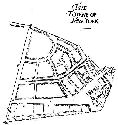 Illustrations: View of New York (1673), 416; View of The Strand, 417; Plan of New York, 418; Stadthuys (1679), 419.