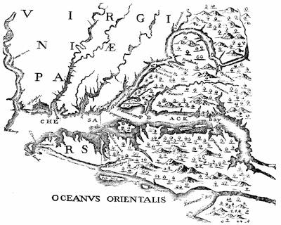 Illustration: Smith’s map of Virginia or the Chesapeake, phototype, 167.